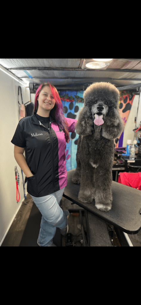 Melissa&Steven have 4 large dogs- Cherokee the Great Dane (our logo) Apache & Orion, the standard poodle brothers, and Sahara the German Shepherd; as well as 2 cats (plus an outdoor TNR colony of 4 cats) and a few reptiles and frogs. In the summer, Melissa and Steven can be found with Apache and Orion at dog shows and sporting events, or wheeling their Jeep. They also love seeing the Devils hockey team play. When they aren’t grooming, Melissa and Steven coordinate and lead TNR (Trap-Neuter-Release) efforts for their town’s community cats.